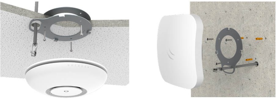 cAP ac je designové AP s nabídkou kompletního servisu RouterOS funkcí a je dodáváno s dvěma verzemi krytu pro montáž na strop či na stěnu.