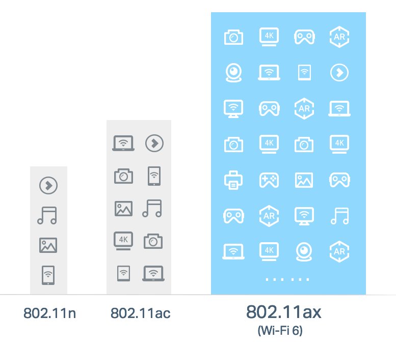 Hry, streamování 4K / 8K, inteligentní domácí zařízení a všechny AR / VR soutěží o síťové zdroje, vytvářejí zpoždění a přeplňují vaši síť. K vyřešení tohoto problému byl vytvořen 802.11ax (také známý jako Wi-Fi 6), vysoce účinný standard Wi-Fi příští generace. Nyní můžete současně připojit více zařízení a užívat si optimální rychlosti pro každé z nich.Wi-Fi příští generace — 802.11ax