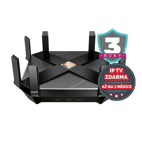 TP-Link Archer AX6000 je Wi-Fi router příští generace s novou OFDMA modulací podle 802.11ax. Ta zvyšuje až 4x průměrnou propustnost v místech s vysokou hustotou provozu ve srovnání se standardním routerem 802.11ac. 8x Gigabit LAN, 1x WAN, USB 3.0, USB C.