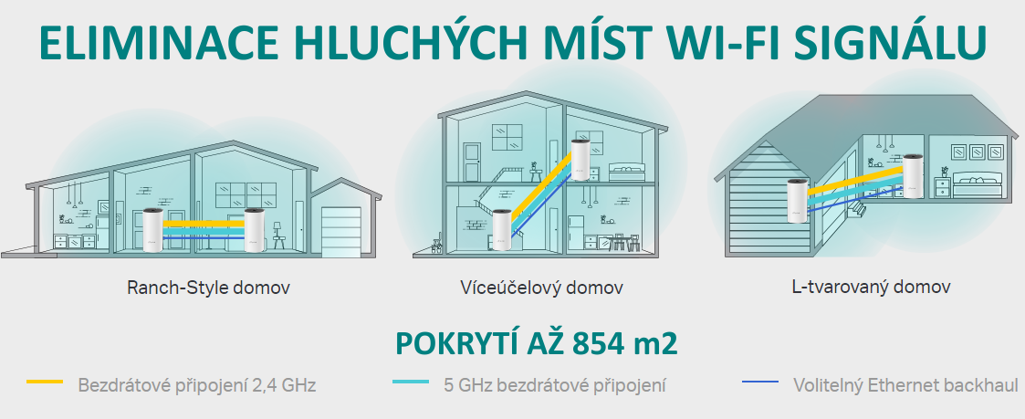 Tento balíček Deco M4 poskytuje Wi-Fi na ploše až 854 čtverečních metrů