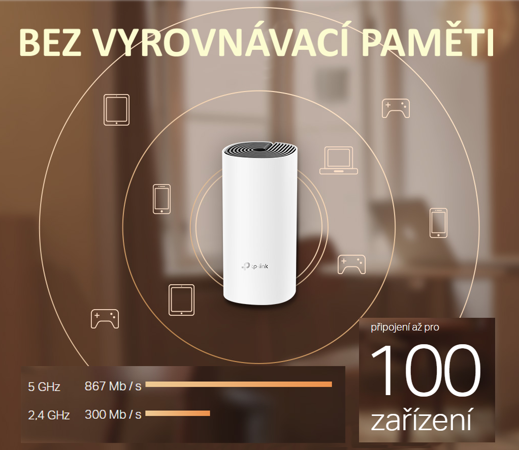 Vaše zařízení se pak při procházení domovem automaticky přepíná mezi jednotlivými moduly. V této sadě se nachází dva Deco E4, které pokryjí Wi-fi signálem plochu o rozloze až 854 m2. Pokud by to nebylo dostačující, stačí přikoupit další moduly a pokrytí navýšit.