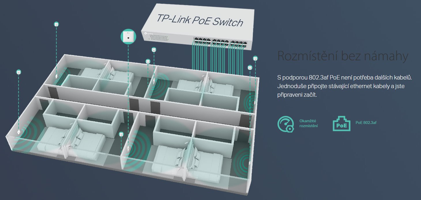 Podpora napájení přes ethernet (PoE, 802.3af) pro pohodlnou a cenově dostupnou instalaci