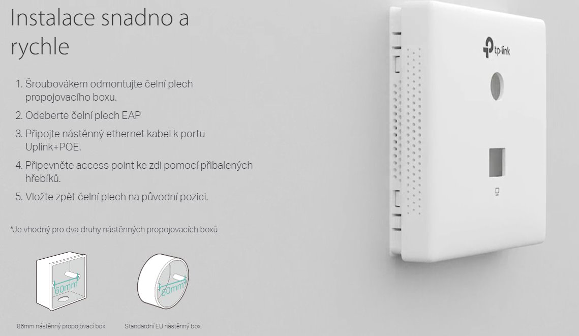 EAP115-Wall se bez problémů hodí ke každému podnikovému stylu se svým uhlazeným, minimalistickým vzhledem. Štíhlý design zahrnuje pouze 11 mm silný kryt.