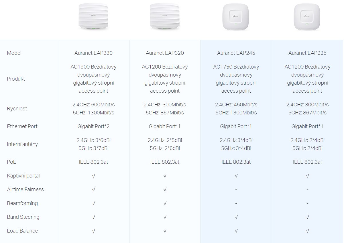 S přelomovou rychlostí 11AC, Wi-Fi výkonem na podnikové úrovni, snadno použitelným softwarem pro centralizované řízení, efektivní funkcí captive portálu, nízkoprofilovým designem a podporou PoE jsou řady EAP 320/330 způsobilejší obsluhovat nejnáročnější podniková prostředí s vysokým počtem klientů, jako jsou školy, hotely a velké podniky. S designem pro snadnou montáž, napájením PoE, funkcí Cluster, softwarem pro centralizované řízení, captive portálem, automatickým řízením RF a podnikovým hardwarem jsou řady výrobků EAP speciálně navrženy pro sítě s velkým počtem klientů.